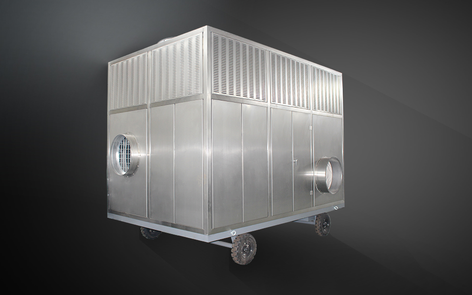 移動式谷物冷卻機組主要由風(水)冷壓縮機制冷除濕系統,空氣循環系統,智能控制系統和移動式基座組成。 該空凋設備是專門針對我國糧食倉儲環境特點和氣候特征綜合分析而特別設計的移動設備, 是各糧食儲備庫實現綠色儲糧、科學保糧目標的重要保障手段,其性能達到國內先進水平。